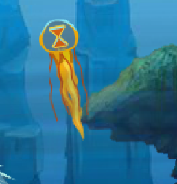 In the game Dragon Training Legends, the player must guide a Scauldron through the sea, avoiding Viking trash and eating tasty fish. In this game, two varieties of jellyfish appear. The blue, or Multiplier, jellyfish doubles the player's score for a period of time, while the orange, or SlowMo, jellyfish slows down time for a brief period, enabling the player to eat faster-moving fish and avoid Viking trash quicker.