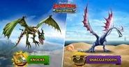 Knocks is an Armorwing introduced in the game , Dragons: Rise of Berk , during the "Berk Brawlers" Gauntlet Event in July 2017.