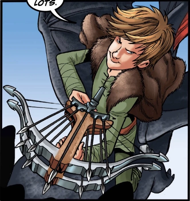 During the events of "Dangers of the Deep", Hiccup invents this device while shirking his duty as acting chief. Mildew walks in on him to complain about the dragons, but Hiccup comments that unless he is interested in the Megapult, he should go. Later, he uses it against the Outcasts and taunts Alvin.