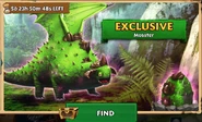Mosster is light green with pale black stripes in veins-like pattern. It has brown spikes, horns and claws. Its eyes are yellow.