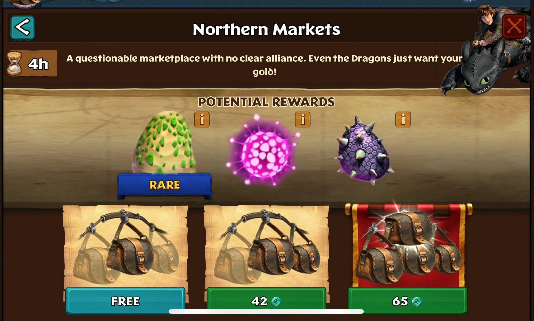 Later, at the release of the Sandbuster in game, the Northern Markets became searchable by Toothless, then again by the Light Fury in 2019.