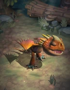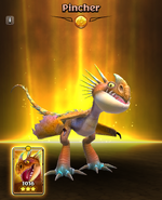 Unlike most Nadders , Pincher is an astonishingly friendly dragon — perhaps a little too friendly! So dubbed for his painful habit of nipping at those who pet him, Pincher often forgets that not everyone has a hide as tough as his own. But what this Nadder lacks in finesse, he more than makes up for with affection. His heart's in the right place, but not always his beak. Pincher loves to flock with his big sister, Stormfly , who tolerates having her juvenile sibling around — until he takes play-time too far and bites her!