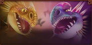Deadly Nadder : Ambered Nadder • Bork Week Nadders • Brush Nadder • Defender Deadly Nadder • Edge Nadder • Fireshrike • Flystorm • Hardychomper • Helsgate Nadder • Kingstail • Lethal Lancebeak • Nimble Nadder • Pincher • Scardian • Seedling Stormpest • Skyblade • Springshedder • Steelspike • Steeltrap • Stormfly • Stormfly's Mate • Stormfly's Offspring • Sunflower • Vaynglory • Vexclaw