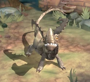 When these unpleasant dragons engage in territorial disputes, they angle their natural plating to parry the attack and leave their opponent open for a riposte. Plated Razorwhips go to great lengths to pick a fight. They claim vast swaths of land as their territory and eagerly await the chance to defend it. When their rule of the land is absolute, they quickly get bored and find a new home — often already occupied.
