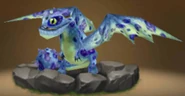 Primal Snafflefang is blue with purple spots all over his body. He has white on his wings and white belly.