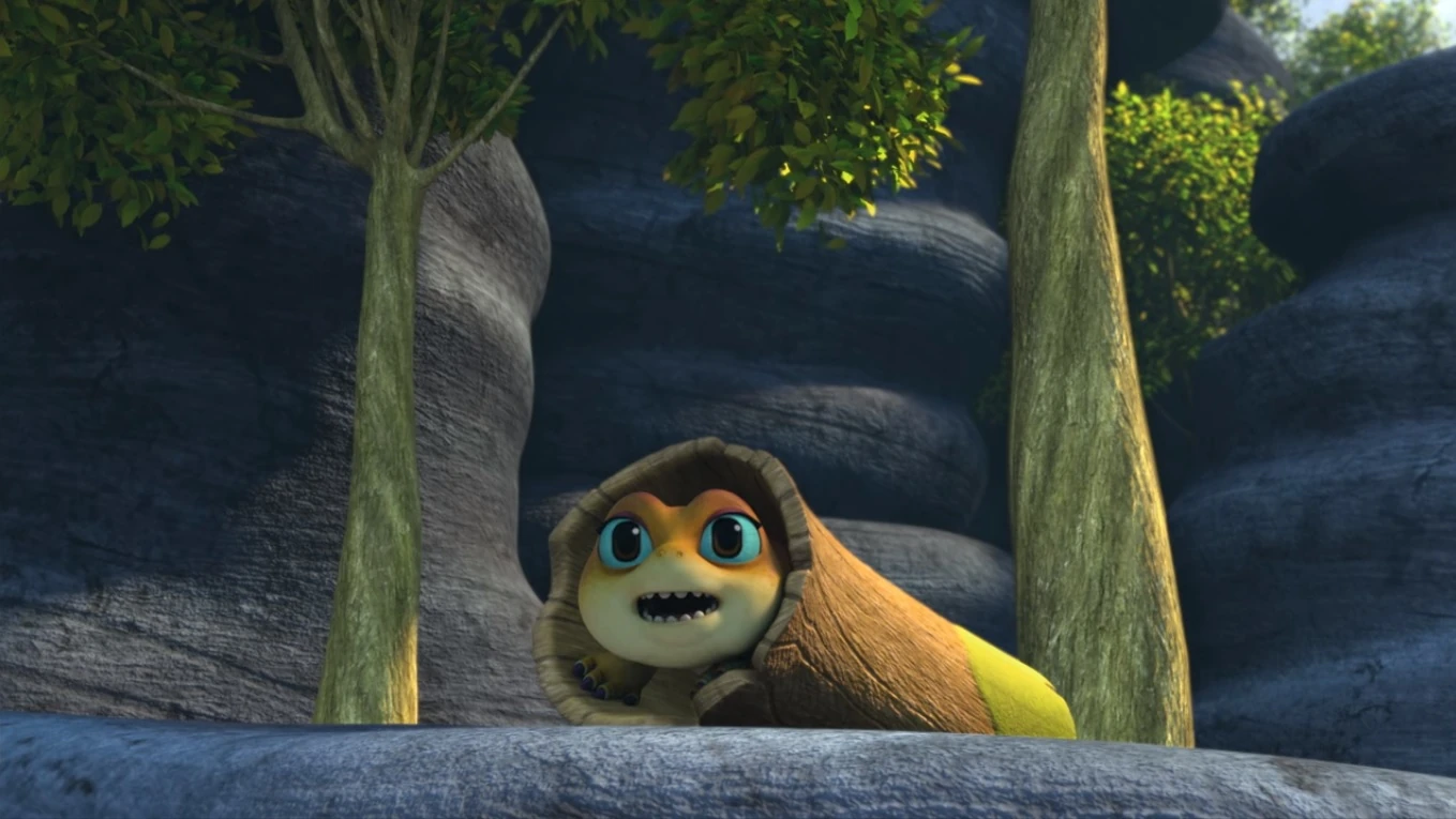 Aggro and Zeppla start their search, and the Puffertail keeps informing her friend every minute about the places she checks. Just Zeppla goes inside a log, Aggro tells her that she doesn't need to update her constantly. Just then, she hears a scream and goes to investigate, unintentionally leaving Zeppla alone. The Puffertail notices that Aggro is no longer around and inflates in embarrassment. Cutter and Winger, who were also scanning the area, notice Zeppla and offer to help her in finding Aggro. After a short time, they find both Aggro and Elbone stuck in sand.