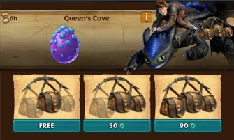 Queen's Cove is a location searchable by Toothless in the game, Dragons: Rise of Berk.