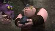 Granite is specifically seen in the series of short videos featuring Olympic-esque Viking games called "Racing For The Gold". One of the medals for placing in an event is a slab of Granite strung on a rope. Granite is mentioned again in the Dragons: Race to the Edge episode "Have Dragon Will Travel, Part 1" in which Fishlegs tries to take Berk Granite with him because it "has a nicer finish" when Meatlug eats it. Granite is also mentioned by Burple in the Dragons: Rescue Riders episode "The Nest" in which he says Huttsgalor has a lot of Granite, which he likes ingesting.