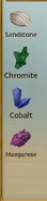 Manganese is seen once in the game School of Dragons in the quest "Glass as a Spectrum". Hiccup, Heather, and the player recently discovered Gronckles could create glass by melting Sandstone. Hiccup asks the player to collect various minerals including Manganese to add to the Gronckle-melted Sandstone.