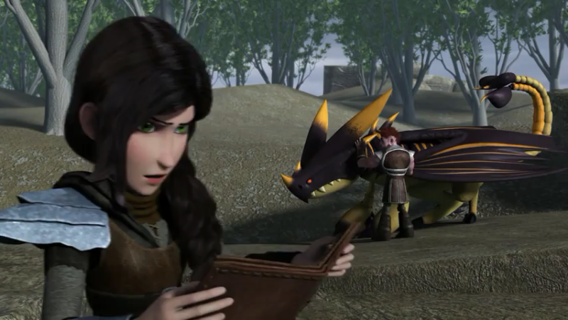 Fishlegs is overjoyed with the vast amount of collected records made by Oswald, including hundreds of fruit recipes. Hiccup lets Dagur know that he can return to Vanaheim with Heather and show her where their father has rested since they have gained the Sentinels' respect. Fishlegs finds a shocking note and shows it to Hiccup containing the sketch of dragon eye lens.