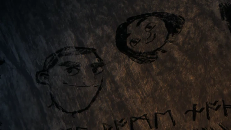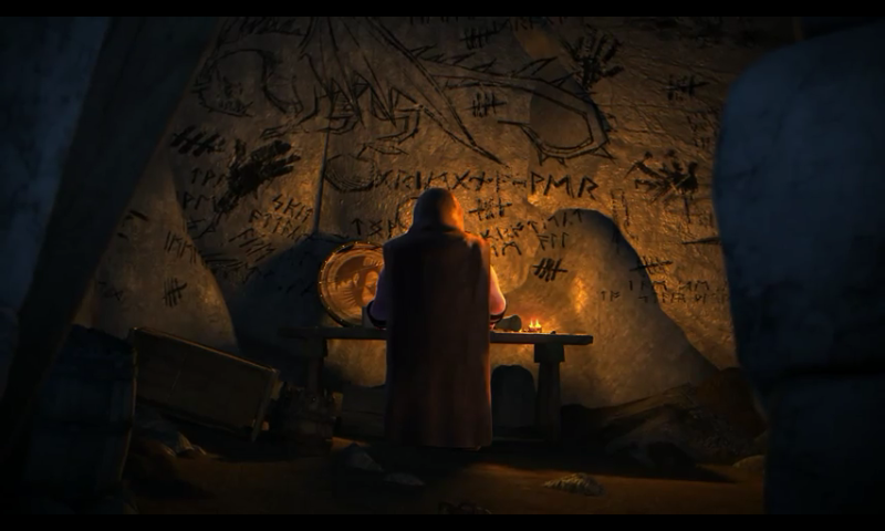 Meanwhile Hiccup, Dagur, and Fishlegs approach the homestead, confirming that it's made by Oswald after learning that the materials of the house are made from a shipwrecked Berserker ship. Dagur suddenly has an emotional breakdown, preventing him from facing his father but Hiccup eventually gets him to open the door. Unfortunately they find Oswald's body instead. They take his body and bury him just outside his house, Dagur mourns him but is overwhelmed with guilt and regret for not finding him sooner. Fishlegs suddenly calls to them from inside the house, where he explains to them, based on the writings from the walls, that Oswald lived the rest of his life protecting the ill dragons of Vanaheim from the plaguing dragon hunters, who he has named Grim Gnashers. Dagur gets reassured with pride, learning that his father was a hero. Shortly after, Toothless discovers a crate containing two letters; one each for Dagur and Heather.