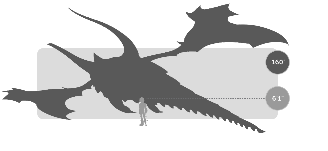 The official measurements given by DreamWorks Animation do not appear to be realistic when considering the relative sizes the viewer sees within the TV Series. Based on the Model Sheet for the Shellfire, this dragon should be twice longer than the Submaripper, approximately 332 feet (101,19 meters) long, and have a wingspan of 300.77 feet (91.67 meters).- The Shellfire is the natural enemy of the Submaripper.