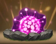 The Shockjaw egg has a spherical shape. It is purple and has a few rod-like structures with a smaller sphere at the end that protrudes out. It has faint pink spots on it. An unknown, translucent substance surrounds it. It could be a purple gel or even its bio-electricity.
