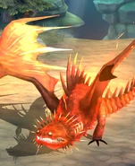 The Shrill Boltbeak is dark red, with light red patterns, spikes, and claws. He has white markings on his head and body. His wings are light red at the base, which turns into yellow and white towards the edges. Being a Titan Wing , he has more massive spikes around his neck. The dragon also possesses two rows of spines along his underbelly — a characteristic that other Skrills seem to lack.