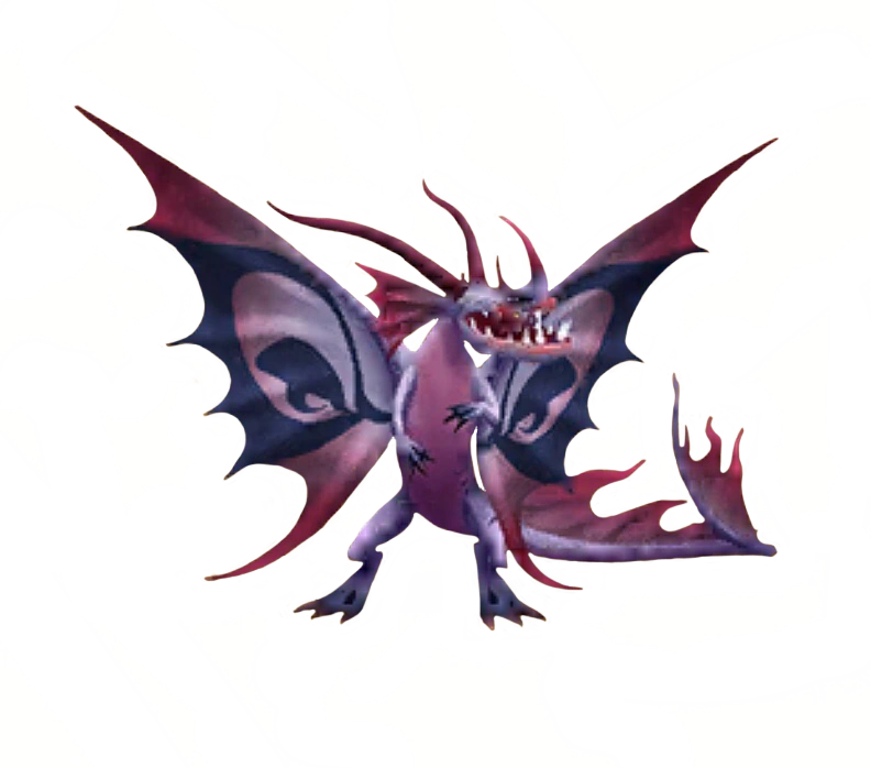 Sirenade is pale purple with reddish-pink belly. Its wings are dark red with a dark blue model that resemble eyes. Its horns and fins are dark red.