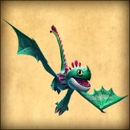 Deadly Nadder: Ambered Nadder • Bork Week Nadders • Brush Nadder • Defender Deadly Nadder • Edge Nadder • Fireshrike • Flystorm • Hardychomper • Helsgate Nadder • Kingstail • Lethal Lancebeak • Nimble Nadder • Pincher • Scardian • Seedling Stormpest • Skyblade • Springshedder • Steelspike • Steeltrap • Stormfly • Stormfly's Mate • Stormfly's Offspring • Sunflower • Vaynglory • Vexclaw