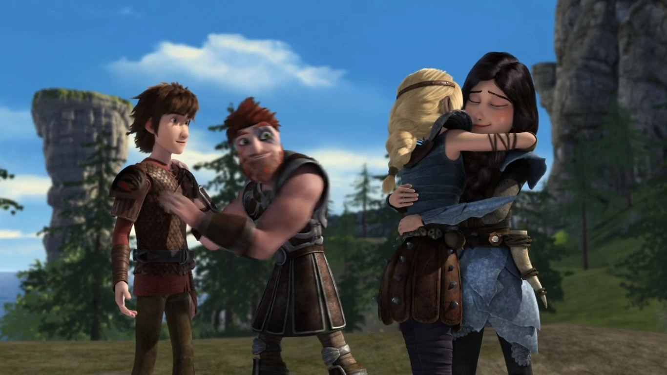At the village, a skirmish ensues between the Riders and the Berserkers, supported by Toothless atop the cliff. They managed to push through to Savage’s headquarters and overpower the remaining Berserkers. Sensing defeat, Savage grabs Heather and threatens to kill her, demanding they lay down their weapons. But Snotlout and Dagur arrive just in time, with Snotlout knocking out Savage, and Dagur able to regain his position as chief.