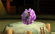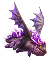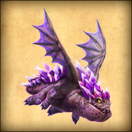 Spikeback has a pudgy body that is deep purple in color. Unlike most Quakens that have brown or darker colors, Spikeback has glistening, crystal-like spikes that jut out of her back. She has several brown spots on her chin, wings and limbs.