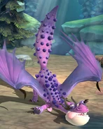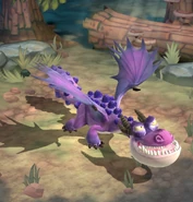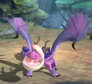 Swamp Abomibumbles possess light beige underbelly and brown horns and claws. While the dragons' bodies are comprised of purple and pink shades, the bumps all over them and their tails are purely lavender in color.