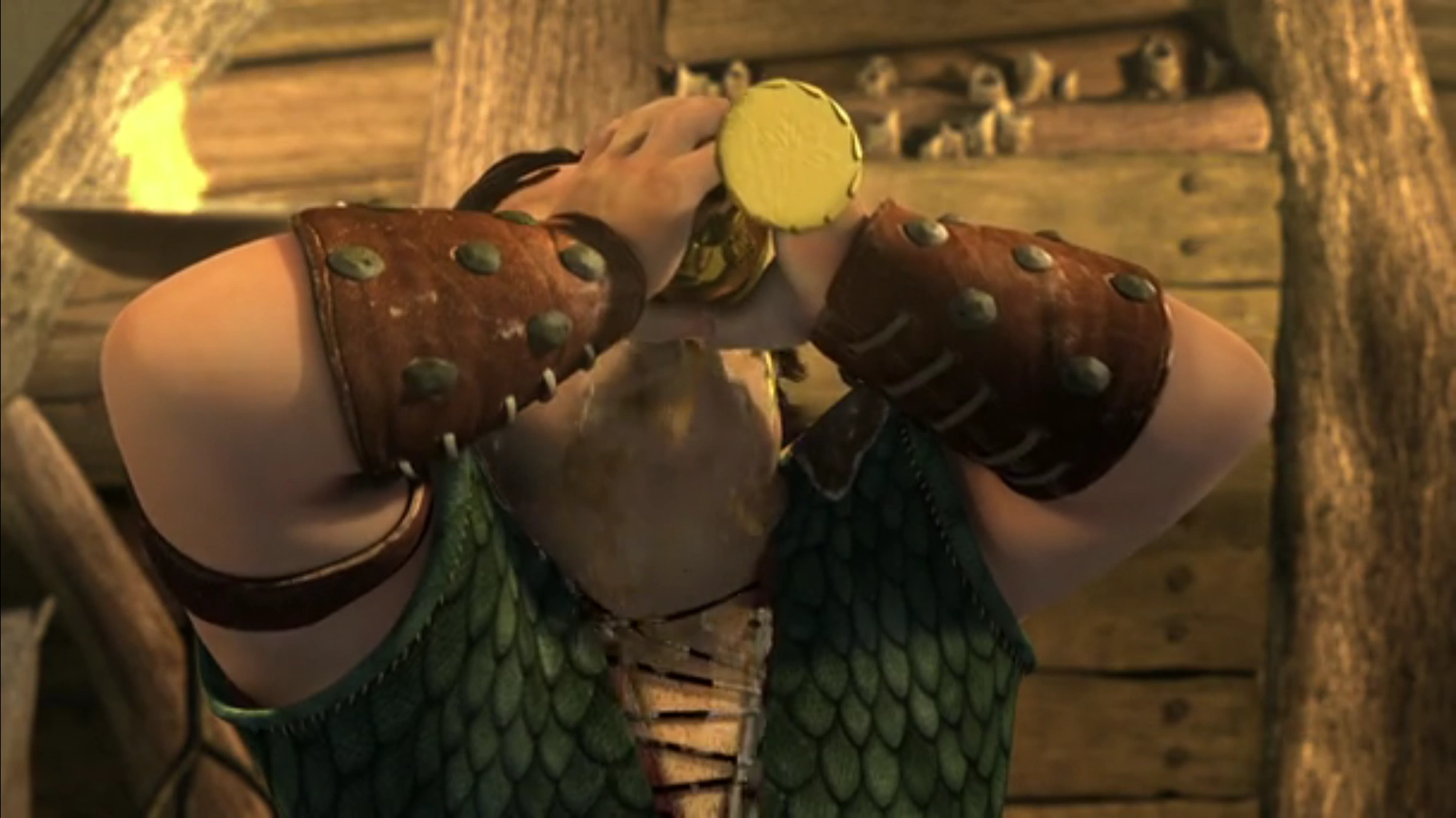 In "Snotlout's Angels", the Wingmaidens give Snotlout a tea that is suppose to help him regain his strength. He loves it, and slobbers it all down his face while drinking it, after which he asks for more.