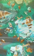 The Solid Sea, as its name suggests, is a frozen sea of ice. There are a few largish snow-covered islands with a few evergreen trees. There are also some Sea Stacks around the islands and drift ice floating in between. A couple of Viking stone structures can be found on the islands. Later in the game, the region takes on a decidedly green pall, after the Dragonroot Company sets up various camps.