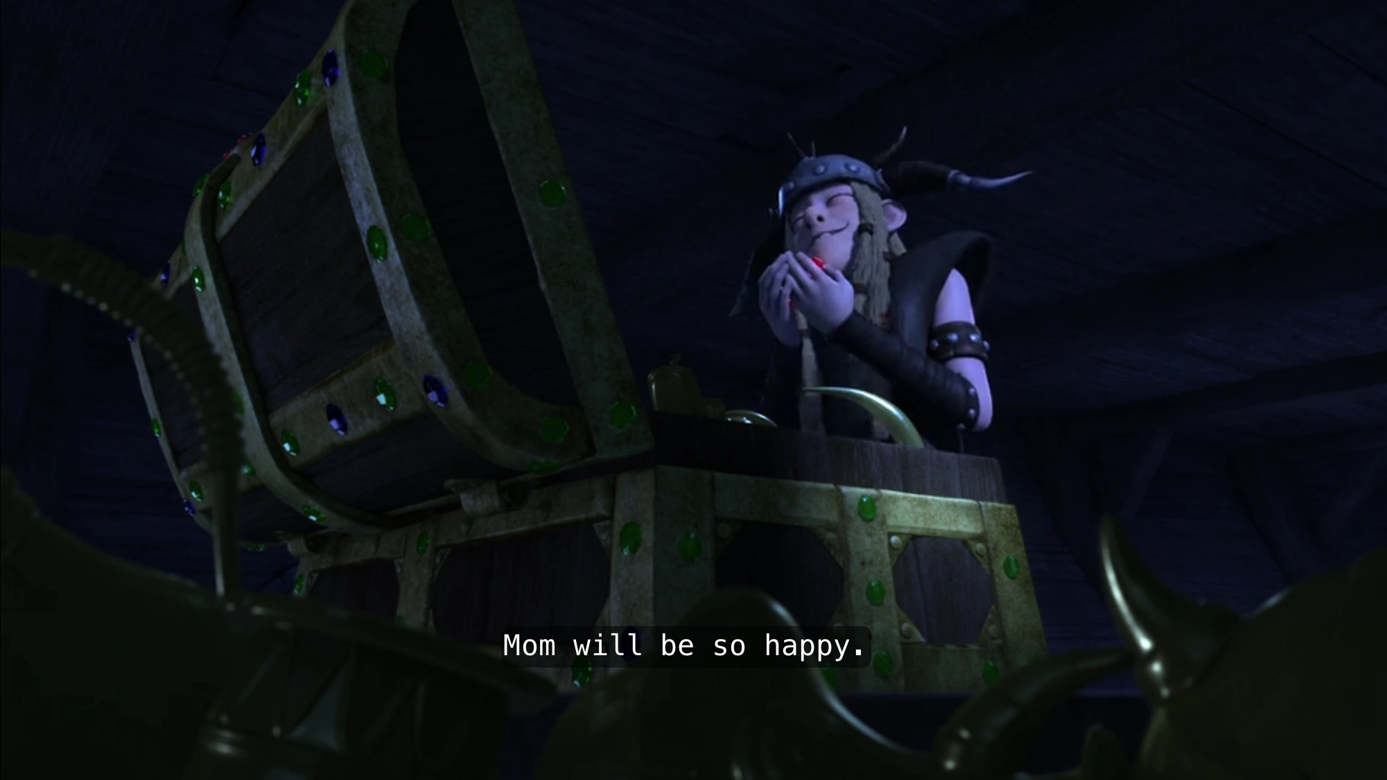 | “ | Jewels, jewels! You know what we're gonna do? We're bringing them back for the family. Mom will be so happy. Wait, but how are we going to carry all these back to Berk? | ” |
