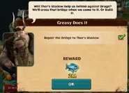 The player must build the Thor's Shadow Bridge to access the Thor's Shadow land expansion area to increase space in the Quest "Greasy Does It".