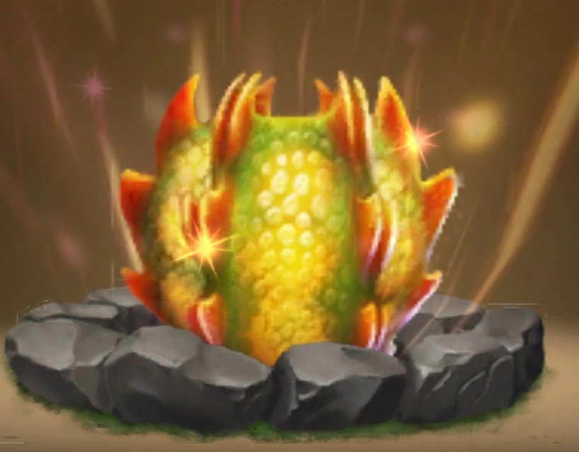 Thornridge eggs look like an upside down triangle as it has a smaller base and a wider top. They have rows of spikes that run down vertically. The spikes closer to the top tend to be larger than those closer to the bottom. The egg looks very similar to a Singetail's, although they don't really share any further features.