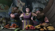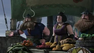 After Berk lost its trader, Johann, Hiccup called Lena, Zachariah and another unnamed trader, hoping that one of them could replace Johann, since he knew them as "three of the most trusted and experienced merchants in the Archipelago". They were all rejected by Stoick, but they didn't leave. Gobber was then asked to pick one of them, however he couldn't decide as all of them had quality food and goods. Lena and Zachariah then suggested a cooking contest to solve the problem, which was accepted with the Twins as judges. Lena prepares yak chops with a light dusting of paprika-infused wheatgrass, which the twins like. When they announce that the contest ends in a tie, the merchants take out their weapons in anger, just as Dragon Flyers invade Berk. They disappear. Later Hiccup figures out that Johann probably hired the three merchants in some way to display many wears, except the medicininal plant willow bark.