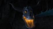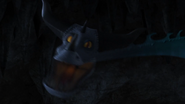 While searching for Astrid, Snotlout sees light in a cave and thinks he found her. However, when he enters it, he actually finds an angry Typhoomerang that chases him out.
