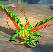 Deadly Nadder : Ambered Nadder • Bork Week Nadders • Brush Nadder • Defender Deadly Nadder • Edge Nadder • Fireshrike • Flystorm • Hardychomper • Helsgate Nadder • Kingstail • Lethal Lancebeak • Nimble Nadder • Pincher • Scardian • Seedling Stormpest • Skyblade • Springshedder • Steelspike • Steeltrap • Stormfly • Stormfly's Mate • Stormfly's Offspring • Sunflower • Vaynglory • Vexclaw