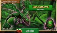 Turfraider is dark green and has a pattern all over her body that resembles the light spots on a forest floor. She has a muddy brown underbelly and light brown horns, spikes and claws. Her eyes are yellow.
