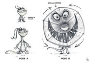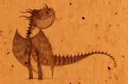 In The Dragon Sheep Chronicles, "The Secret Sheep Society", the Sheep of Berk express their distress at the increasing number of dragons surrounding them. In the images of a group of hapless sheep surrounded by various types of dragons, there are two dragons that appear with three eyes, three striped horns on their face, and Zippleback-like rounded spines running down their backs. At least two rear legs are seen in the image, but it is unclear if they have forelegs or not. They do have a pair of small wings.