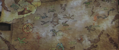 During his travels, Hiccup has discovered many new species of dragons. He has recorded the location of these dragons on his map. Some of these dragons were previously seen in concept art for the movies. It was later confirmed that some of these dragons are actual, existing species in the franchise, while others were placed there only for artistic purposes.[1]