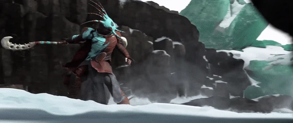 Combat Hooks: The two double hooks allow Valka to hook onto other dragons and defend them from trappers. They also help her in latching onto objects before swinging herself from them. Valka also uses the staff as a weapon.