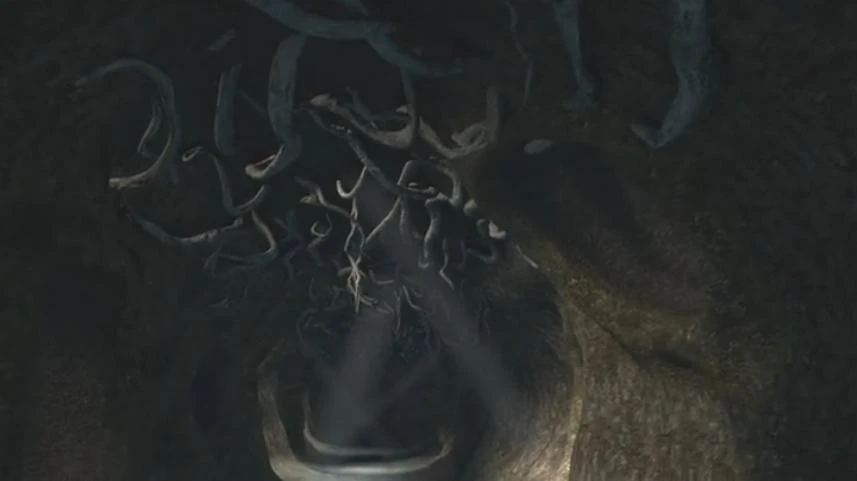 However, the Whispering Death spots them and they attempt to flee as fast as possible. When they reach the opening, Hiccup lifts Fishlegs to reach Astrid's hand and he makes it to the surface. However, Hiccup finds himself trapped as he is unable to reach Astrid's hand no matter the effort, the Whispering Death is traveling to him fast. Hiccup has no choice but to brace himself as the Whispering Death charges at him with mass dirt and debris causing him to burst out of the hole.